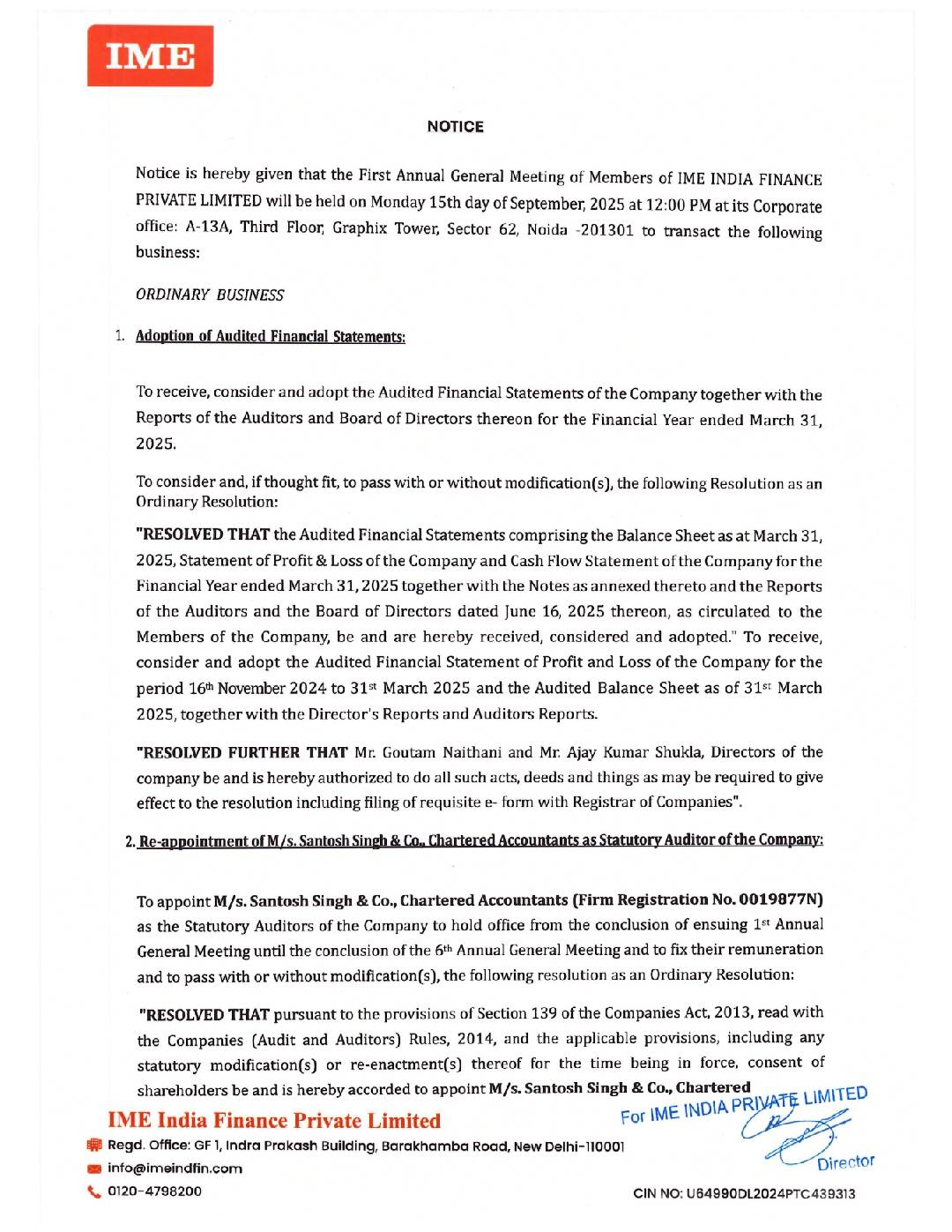 2. If the customer is not satisfied with the resolution provided by the Company’s Grievance officer, the grievance can be escalated to the Company’s Nodal Officer at nodalofficer@imeindiafinance.com.