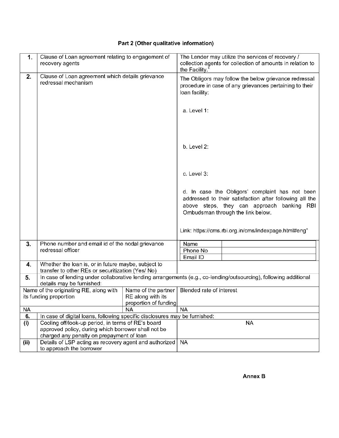 • Interest rate models, reference lending rate and other charges and their periodic revisions will be made available for the general public as required.