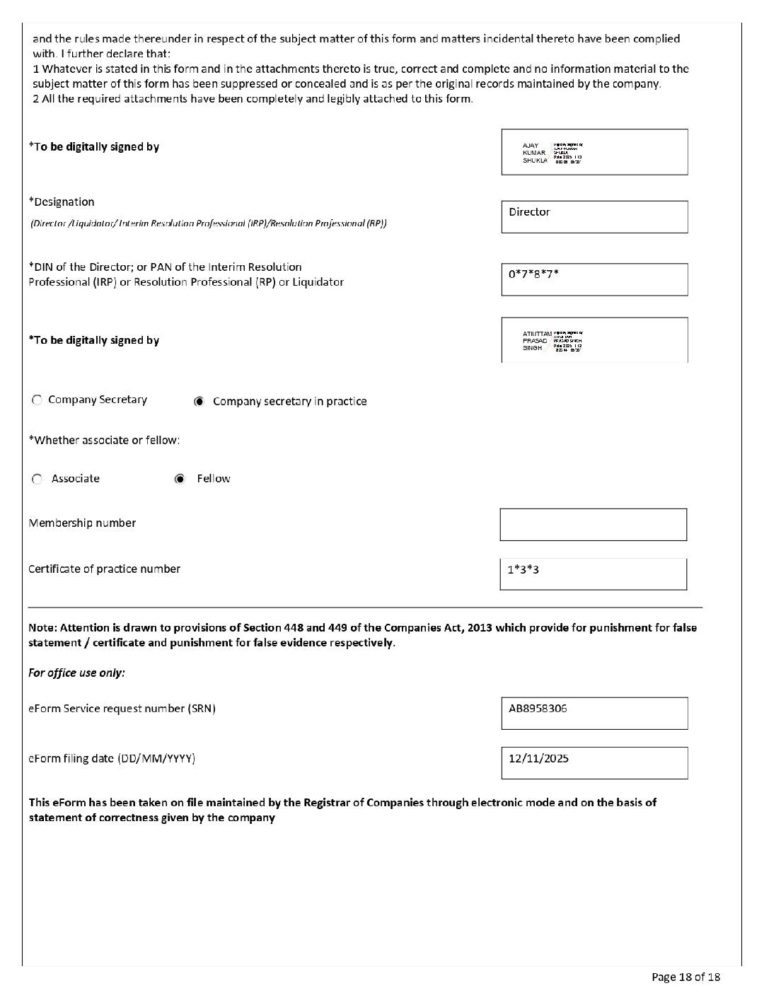 1. Name, address and contact number of Grievance Redressal Officer(s) is made available on public domain.