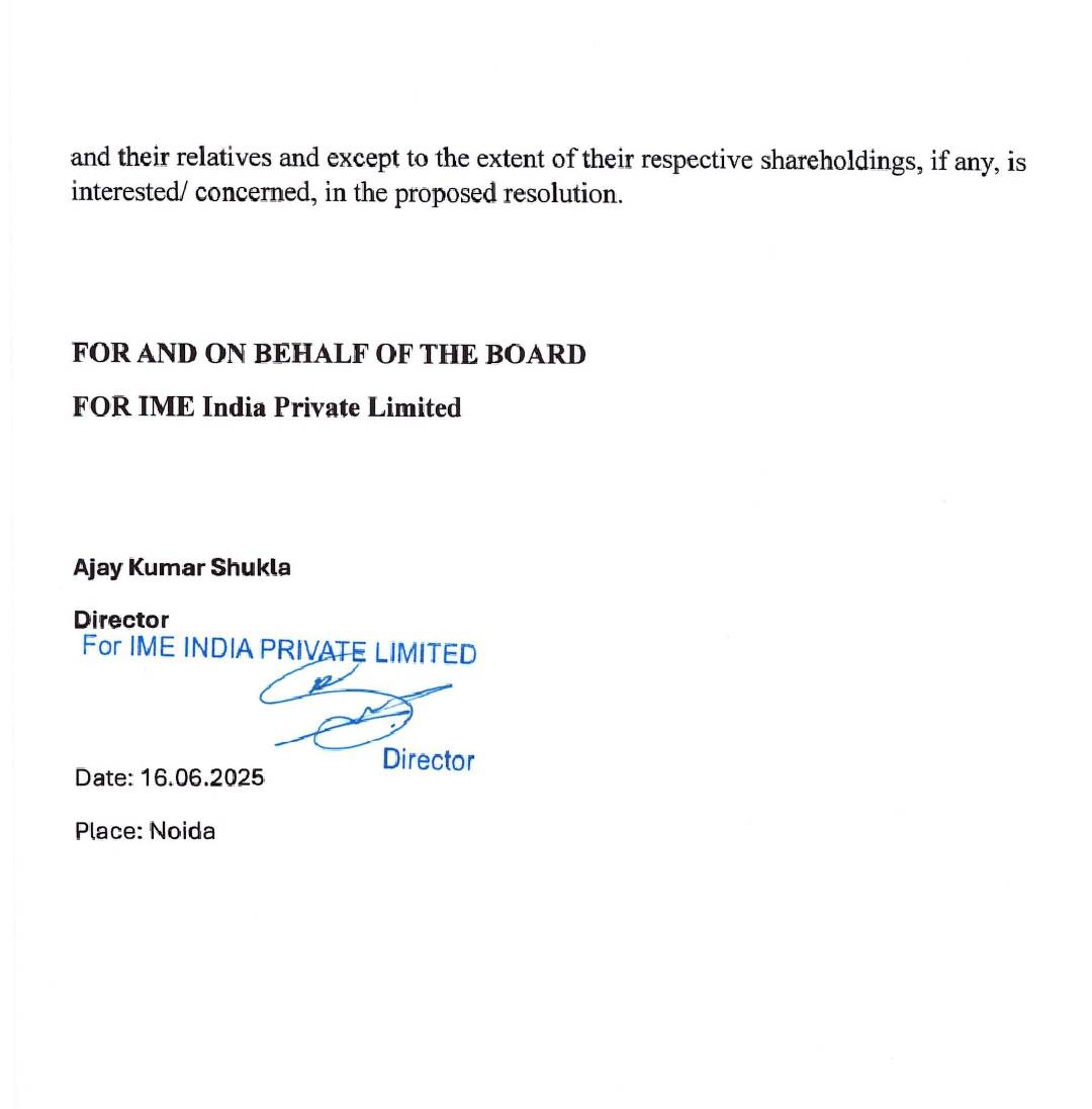 Keeping in view the RBI’s guidelines as cited above, and the good governance practices being followed by IME India Finance Private Limited (IME India Finance), the following internal Guidelines, Policies, Procedures and interest rate model have been adopted by the Board of IME India Finance at its meeting held on 21st January, 2026, for its lending business.